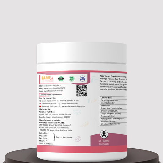 Food Topper Powder For Dog and Cat | Moringa powder, Pea protein, Ashwagandha powder,Mycelium |200 gm Jar