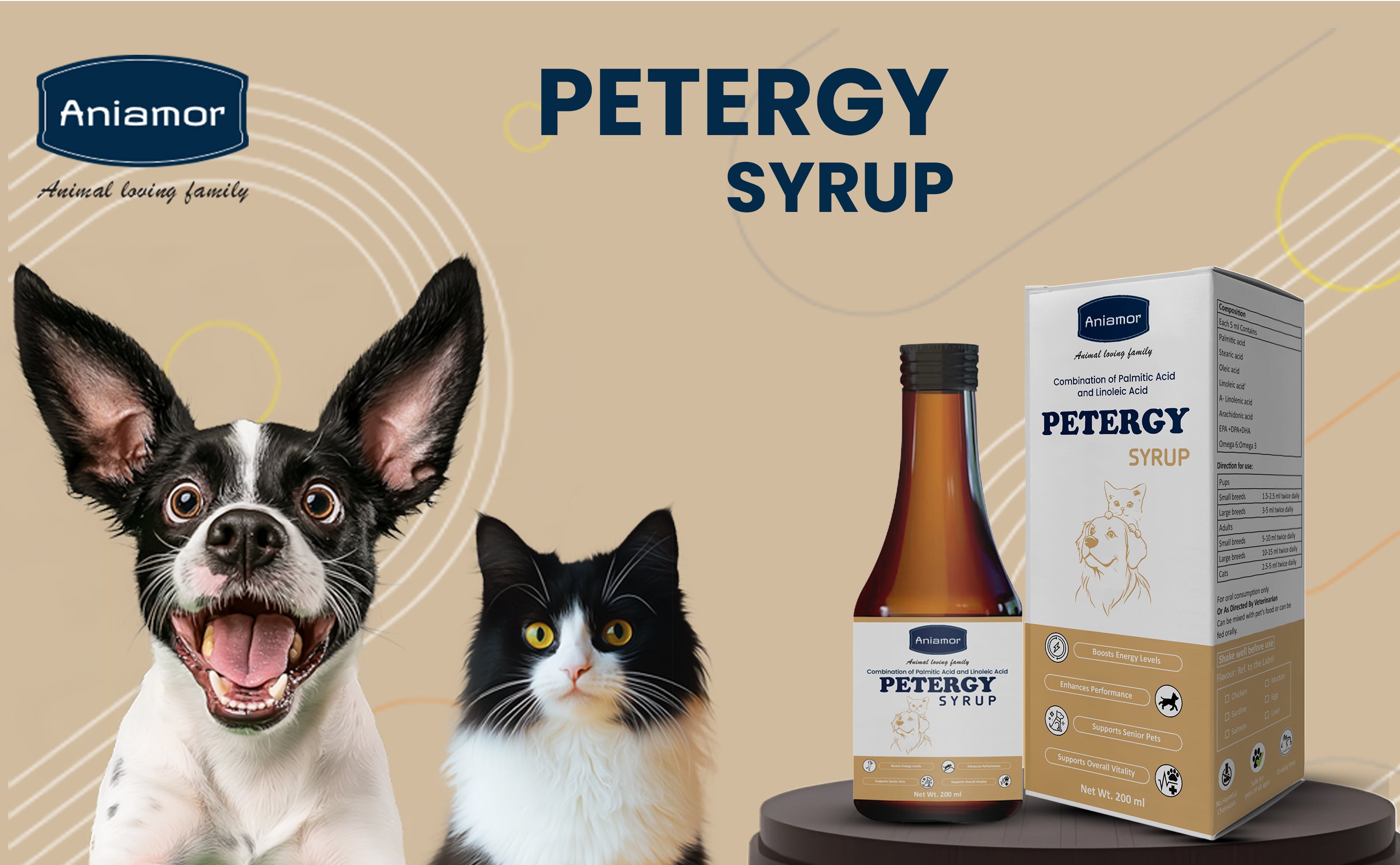 Yes, Aniamor Petergy Syrup is specially formulated for both dogs and cats of all ages and breeds.