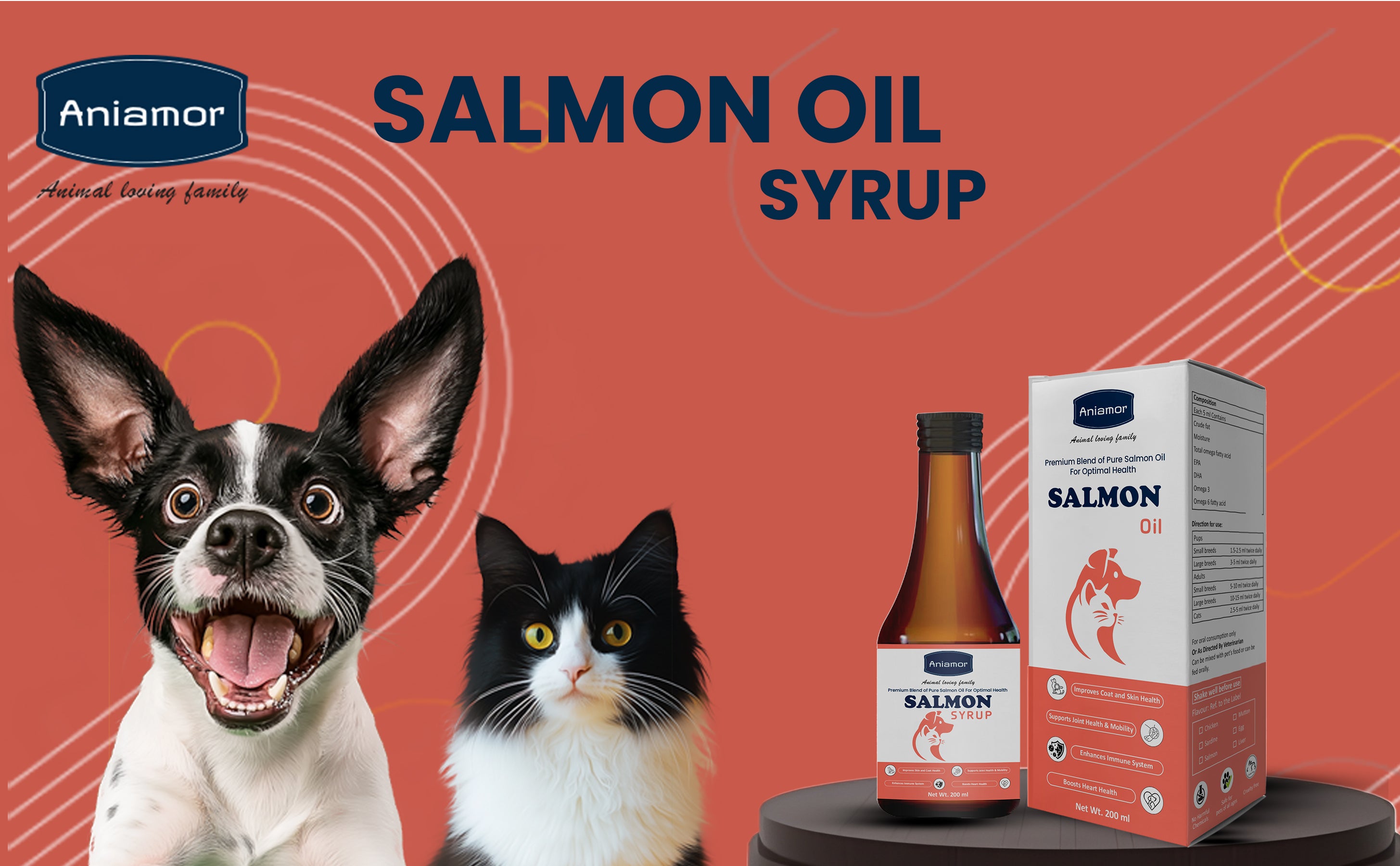 Yes, Aniamor Salmon oil Syrup is specially formulated for both dogs and cats of all ages and breeds.